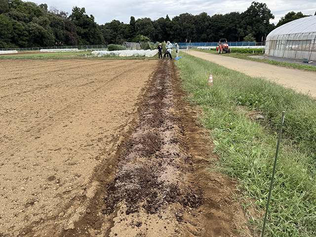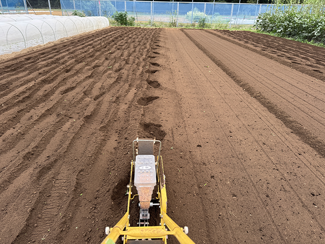 午後は販売実習の搬入当番を終えてから圃場に戻り、ニンニク畝の準備作業へ。