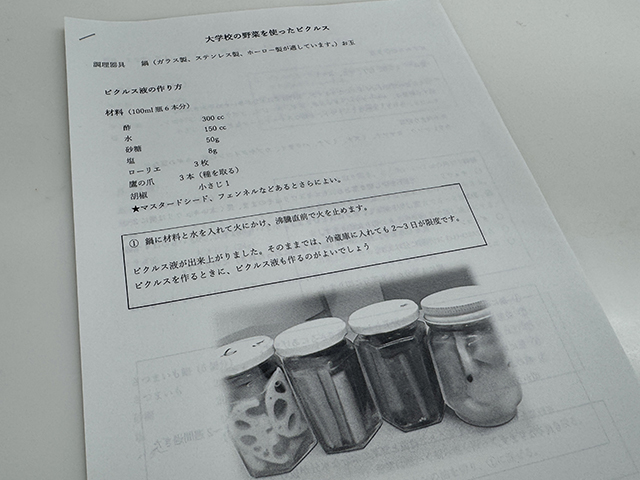今日のテーマは、大学校の野菜を使ったピクルスと三種類のおやきです。