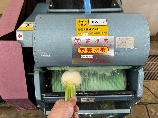 約80株を抜き取り、野菜洗機で一つひとつ丁寧に洗いました。