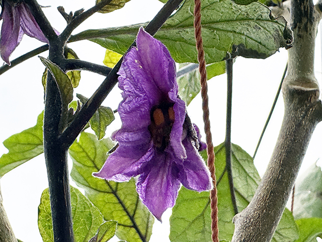 ナスは裂果が多く、実も硬くなり出荷できるものは少なくなりましたが、