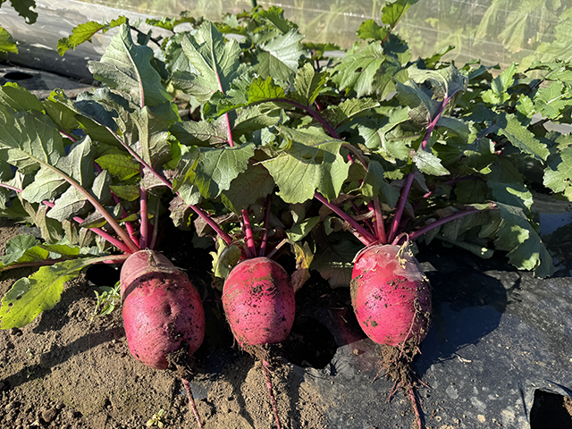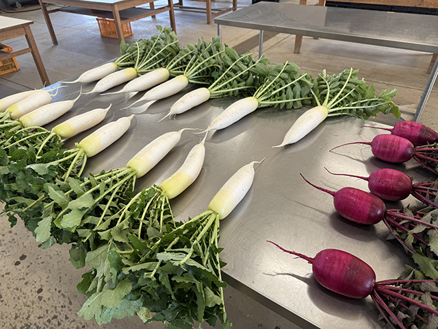 2限のけん引講習までは、ダイコンとカブの収穫と調整作業。