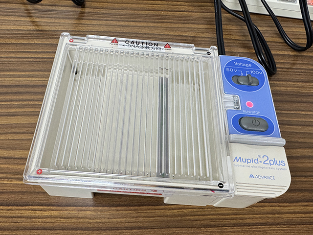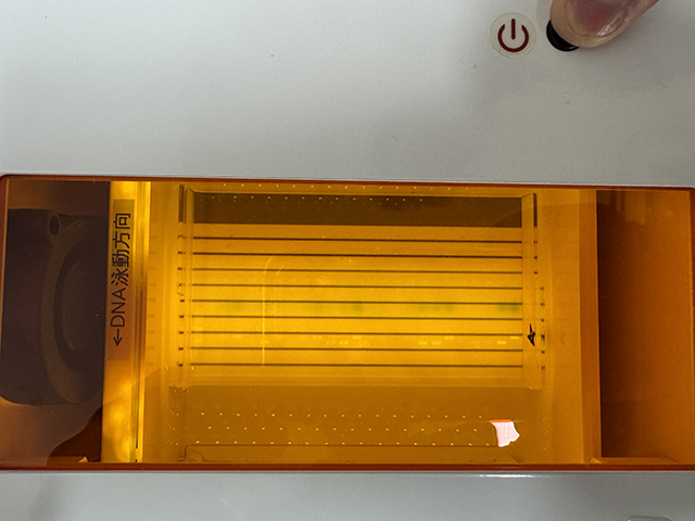 泳がせた後はゲル確認装置でバンドの位置を読み取り、ナシの品種を特定します。