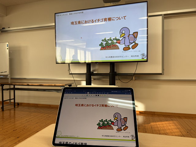 1限目の作物育種は「埼玉県におけるイチゴ育種について」。