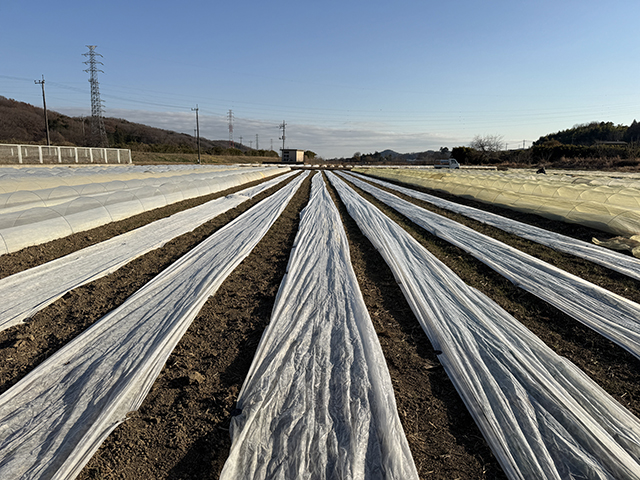一方は多彩な大根を中心に展開する見せ場のあるほ場、もう一方は害虫対策と端境期出荷を見据えた戦略的なほ場。