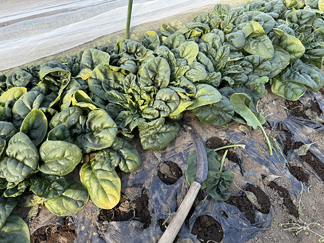 ちぢみホウレンソウはやや数量が少なかったため、追加で収穫対応。