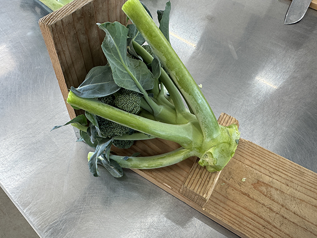 ブロッコリーは専用の型にあててサイズをそろえてカットします。