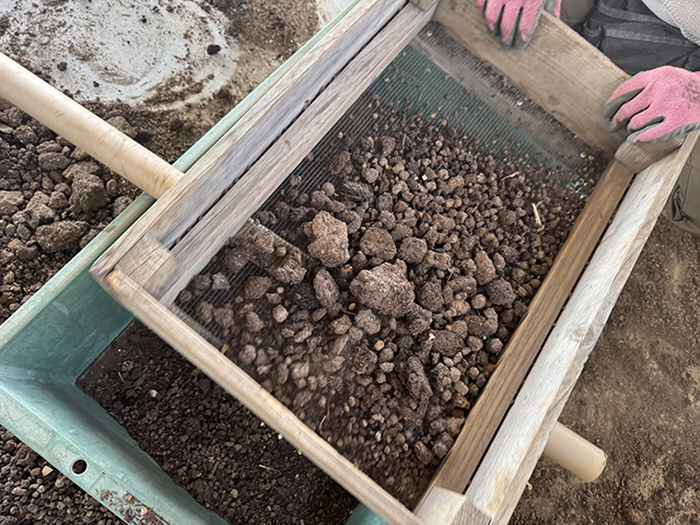 材料を混ぜ、状態を確認しながら進める地味な作業ですが、野菜づくりの要となる大事な工程です。