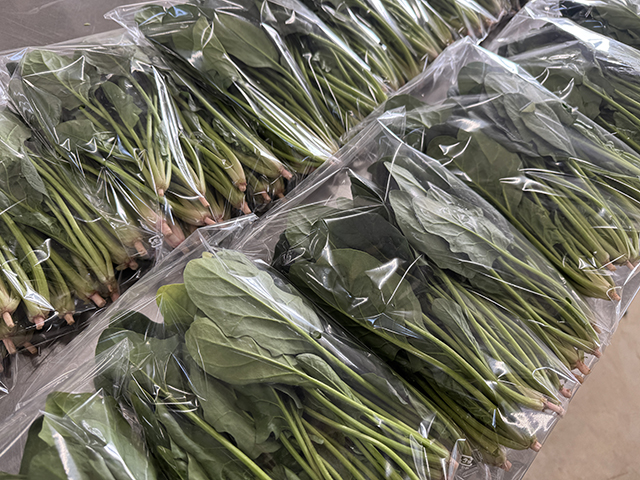 午前中は昨日収穫したホウレンソウの調整作業。