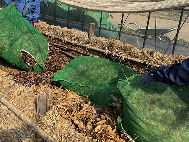 先日作った温床も確認してみると、少し手を入れるだけでしっかりと発酵熱を感じる状態になっていました。