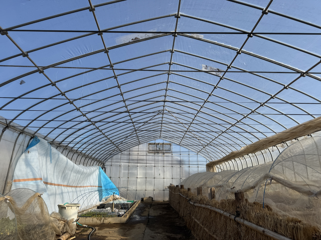 本日、最後の当番日。当番業務は育苗ハウス内の室内遮光シートを張る