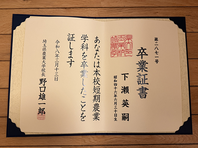 埼玉県農業大学校での学びを発信してきた「プロローグ」は、本日の卒業をもって一区切りとなります。